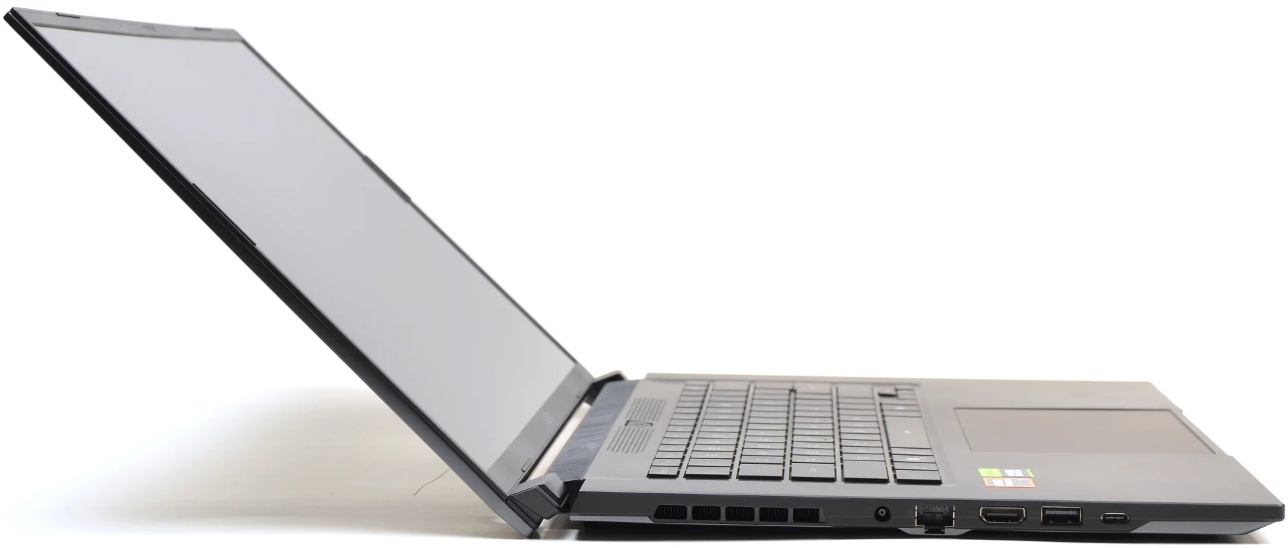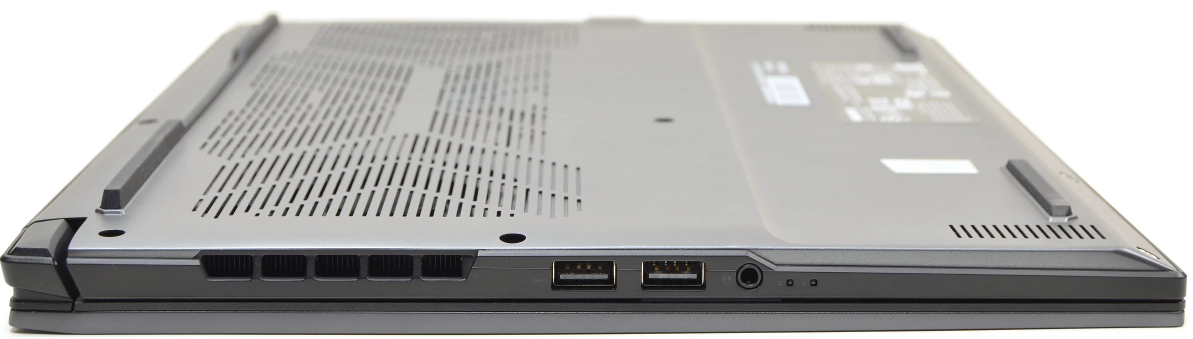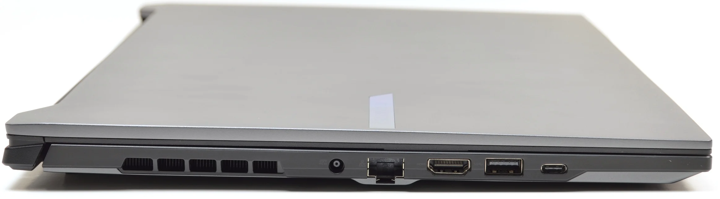 في الجانب الأخر جهة اليسار نجد أهم المنافذ للمستخدم وهم ، منفذ الشاحن ثم منفذ البطاقة الشبكيه يليهم منفذ HDMI 2.1 و منفذ  USB 3.2 Gen 1 بسرعة 5Gb/s ثم منفذ USB 4.0 بسرعة 40Gb/s من نوع Type C هو منفذ مميز للغاية لانه يمكن ايضاً شحن الجهاز منة عن طريق الشواحن الخارجية بقدرة 100 وات و يمكن ان يعمل كمنفذ Display port  و أخيرا الأجزاء الخاصة بالتبريد .