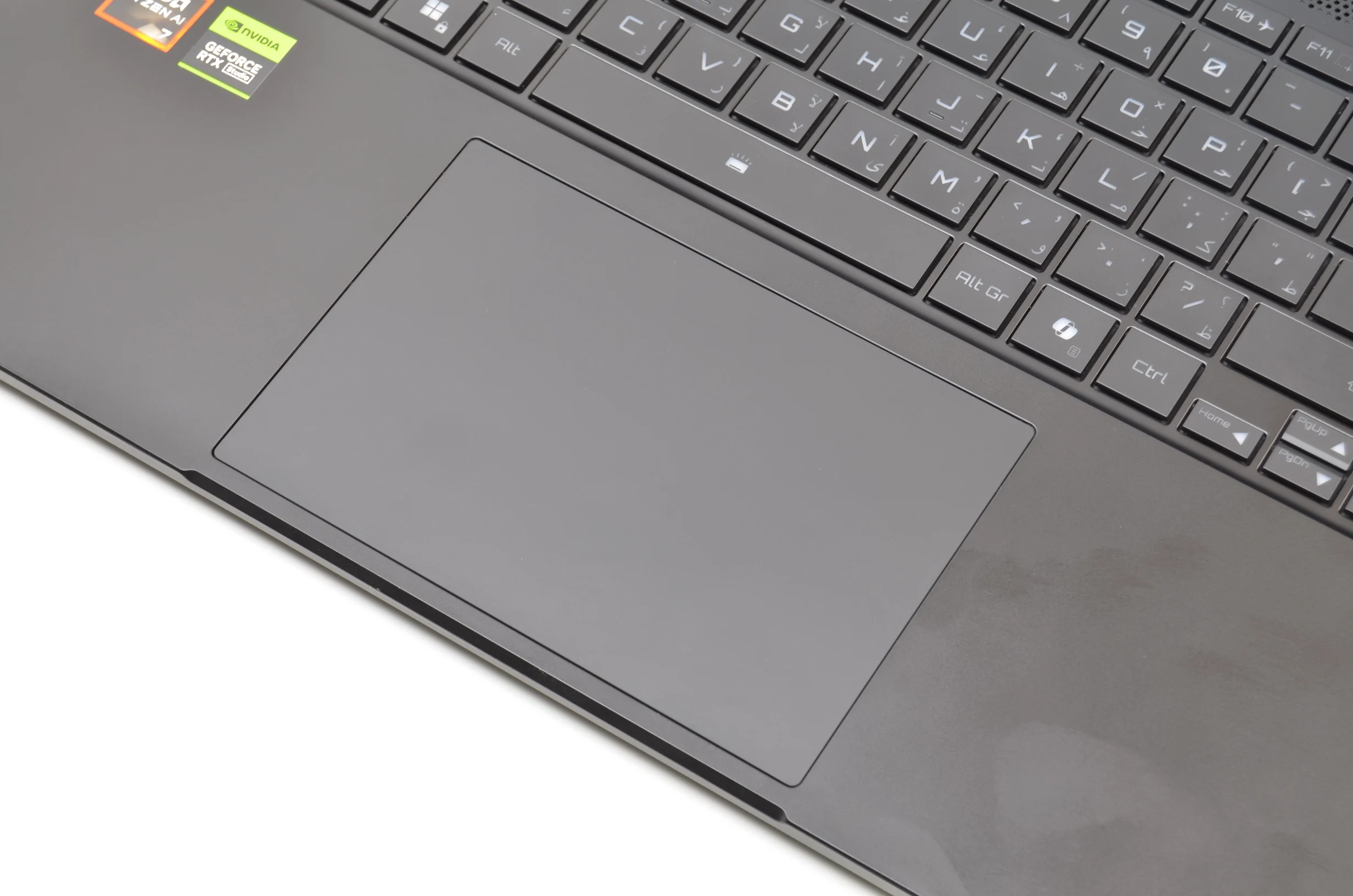 الجزء المسؤول عن استشعار الحركة وهو ما يطلق عليه Touchpad او لوحة اللمس وانا ارشح لك مفهوم مستشعر اللمس ولكن هذه المرة الوضع مختلف فهذا الجزء كبير بصورة مريحة و إحساس الضغطات جيد جدا ، في الجزء اليسار من  أسفل شعارات Nvidia و AMD .