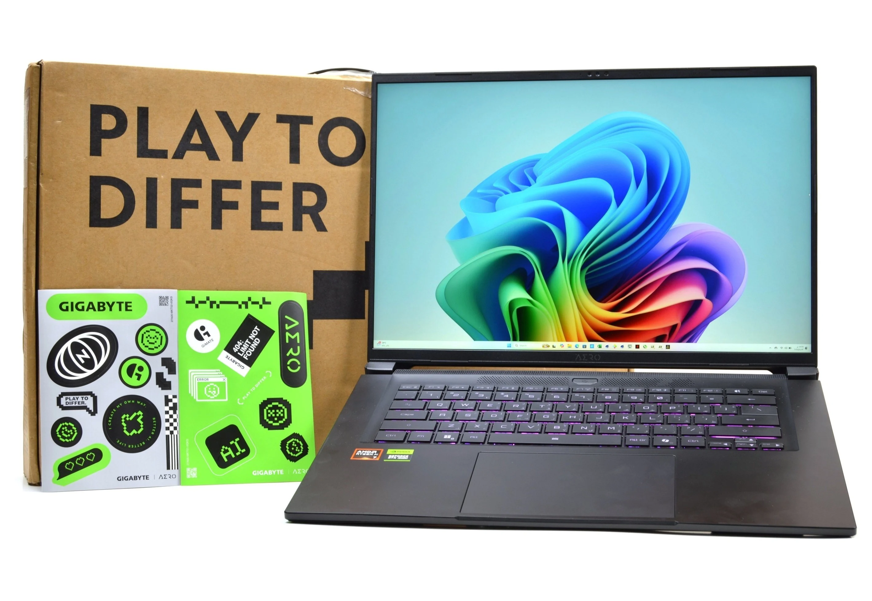 مراجعة اليوم لجهاز GIGABYTE AERO X16 1VH وهو أحد أفضل الأجهزة في السوق المصري الذي يأتي بمعالجات AMD الجديدة Ryzen AI التي تقدم تجربة مختلفة من حيث دعمها للذكاء الاصطناعي و حرارتها الممتازة أثناء التشغيل و بطارية تدوم حتي 8 ساعات للشغل المكتبي مع وزن مثالي 1.9 كيلو جرام و تصميم نحيف لسهولة التنقل ، لنتعرف علي مواصفات الجهاز الخاص بنا ، الجهاز  يأتي ببطاقة RTX 5060 نسخة الحواسيب المحمولة مع 8GB من ذواكر DDR7 مع  معالج Ryzen AI 7 350 من الفئة المتوسطة  من الجيل الجديد بثمانية أنوية مختلطة Zen 5 و Zen 5C و بالطبع يملك بطاقة رسومية داخلية 860M من AMD بأداء يوازي بطاقة GTX 1650 علي أقل تقدير ، الجهاز  يملك شاشة IPS بحجم 16 بوصة وبتردد 165Hz مع سطوع كلي يصل إلي 400 شمعة و اعتمادية Panton للألوان و تقنيات Dolby ATMOS للسماعات ، الجهاز يأتي مع نظام التشغيل Windows 11 Home و كاميرا مخصصة للتعرف علي الوجه و دعم Windows Helloو وحدة تخزين من نوع PCI-E 4.0 بحجم 1TB و 16GB من ذواكر DDR5  يمكنك تركيب وحدة تخزين إضافية من نوع M.2 بكل تأكيد و أحرف عربية للوحة المفاتيح كما سنري معا ! .