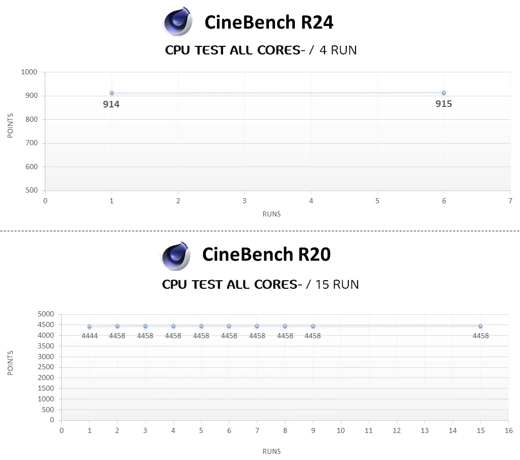 مع الضغط المتواصل في برامج الرندر لفترات طويلة نجد ثبات في الأداء بصورة لم نراها سابقا وهذا بفضل سحب الطاقة المنخفض لمعالجات AMD الجديدة و حرارة شبه ممتازة كما سنرا معا فيما بعد فلم يتخطي المعالج حرارة 90 درجة بصورة قصوي في الرندر و بحرارة متوسطة تصل إلي 83.5 وهو ما يعني ثبات كامل للتررد أثناء الرندر للمعالج المركزي و البطاقة الرسومية لا تتخطي 75 درجة ، اما في الألعاب فلن تري أكثر من 75 درجة للمعالج و البطاقة الرسومية وهو ما سيقدم أداء ممتاز و ثابت مهما كان إستخدامك و صوت تبريد أقل من معظم الأجهزة التي قمنا بمراجعتها سابقا بمعالجات Intel و لنري الأداء معا