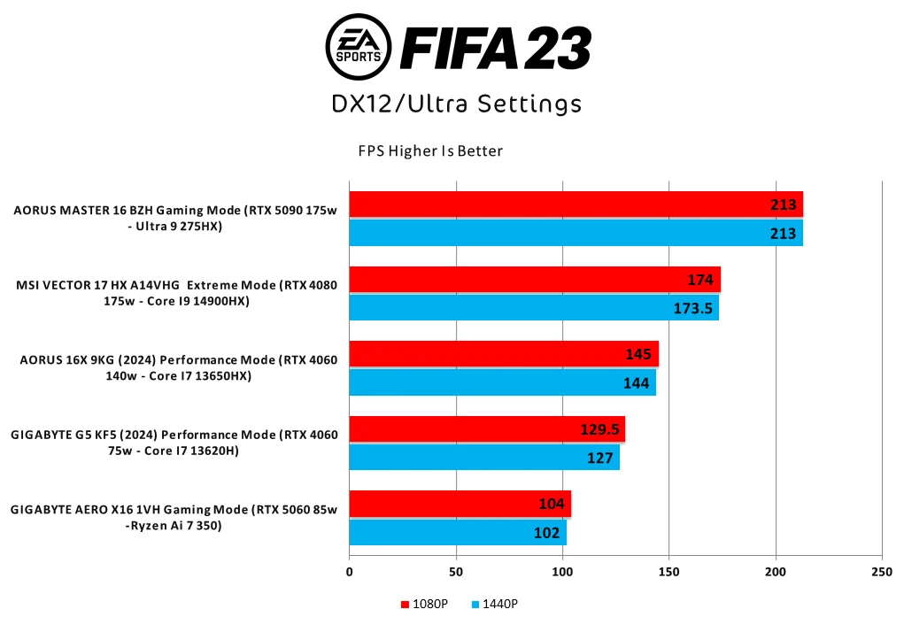 تم اختيار الألعاب هنا بعناية فائقة لتقدم للمستخدم نظرة تحليلية تجمع بين اللعاب الخفيفة و الألعاب العنيفة و بين الألعاب التى تحتاج إلى معالج و اللعاب تحتاج إلى بطاقة رسومية بجانب اللعبة الأشهر لمحبى اللاب توب وهى الكرة ! ، بالتأكيد الألعاب الأخرى بالكامل التى تتوقعها مثل LOL و DOTA هى اللعاب خفيفة لا تحتاج إلى اختبار هنا لان معظم الالأجهزة تعمل عليها دون مشكلة ، ايضاً اللعاب COD و R6S تتغير ادائهم باستمرار نتيجة التحديثات لذلك لا يمكن استخدامهم للمقارنة هنا ولذلك تم الاستعاضة عنهم بلعبة Cyberpunk الأعنف بكل تأكيد وأكثر ثقلا من ما تريد و أستخدام الدقات الأعلي 1440P و 1080P .