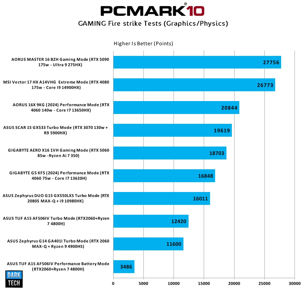 الاختبار الخاص بالبرنامج وهو يملك اختبارات برنامج 3D Mark Firestrike بداخلة سواء الرسومية او الخاصة بتقنية الـ Physics لتقيم اداء المعالجات فى الألعاب و ستجد ان بطاقة RTX 5060 هنا علي 85W و بالتالي تقدم أفضل من بطاقة RTX 4060 ولا تنسي ان هذا الأختبار لا يتضمن التقنيات الجديدة التي تتمتع بها البطاقات الرسومية الجديدة مثل تتبع الأشعة و غيرها من إختبارات أكثر عنفا فنحن نقدم لكم الأداء بشكل عام و كيفية انسجام التصميمات المختلفة مع التبريدات وغيرها من امور متغيرة فكما تري هنا معالج Ryzen AI 7 يتفوق في نقاط و ينخفض في نقاط بسبب التصميم الهجين و السرعات المختلفة لانوية Zen 5c و Zen 5 وهو امر معروف و مفهوم .