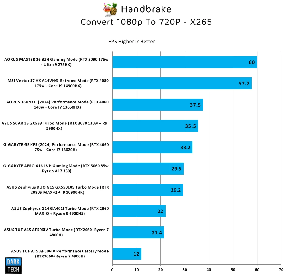 هذه الأختبارات توضح بالفعل قوة المُعالج الحقيقية في برامج تصميم الجرافك وهو يوضع عدد الإطارات التى يمكن معالجتها في الثانية الواحدة عند تحويل الفيديوهات