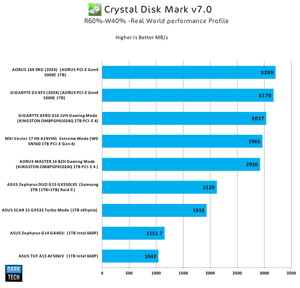 يقوم هذا البرنامج على تقييم وحدة التخزين الخاصة بالجهاز و تم الأختبار هنا بطريقة 60% للقراءة و 40% للكتابة لانى اريد نتائج تطابق الأداء الفعلى ولان اداء وحدات التخزين يتغير من مرة لاخرى حسب حجم الوحدة المستخدم ولذلك هذا الأختبار هو اختبار لمجرد توضيح الأداء فقط لا غير لانة سيختلف باختلاف نوع الوحدة و حجمها وحتي استخدام المستخدم ولكنة الأقرب للواقع بهذه الطريقة وليس لغة الأرقام القصوي فقط ، فالوحدة التي لدينا اليوم يمكنها الوصول إلى 3800MB/s ولكن لن يستفيد المستخدم من معرفة هذا الرقم !
