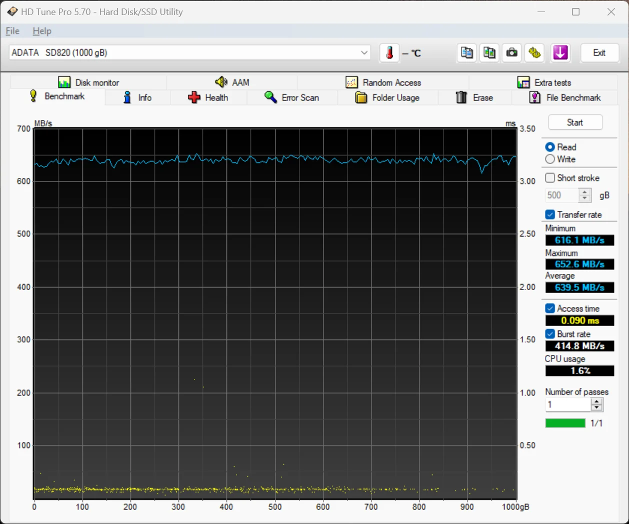 معدل القراءة للملفات علي وحدة التخزين الخارجية هي بمتوسط 640MB/s وهو رقم جيد جدا لوحدة تخزين خارجية من نوع SSD فهو مثل وحدة SE880 Elite !