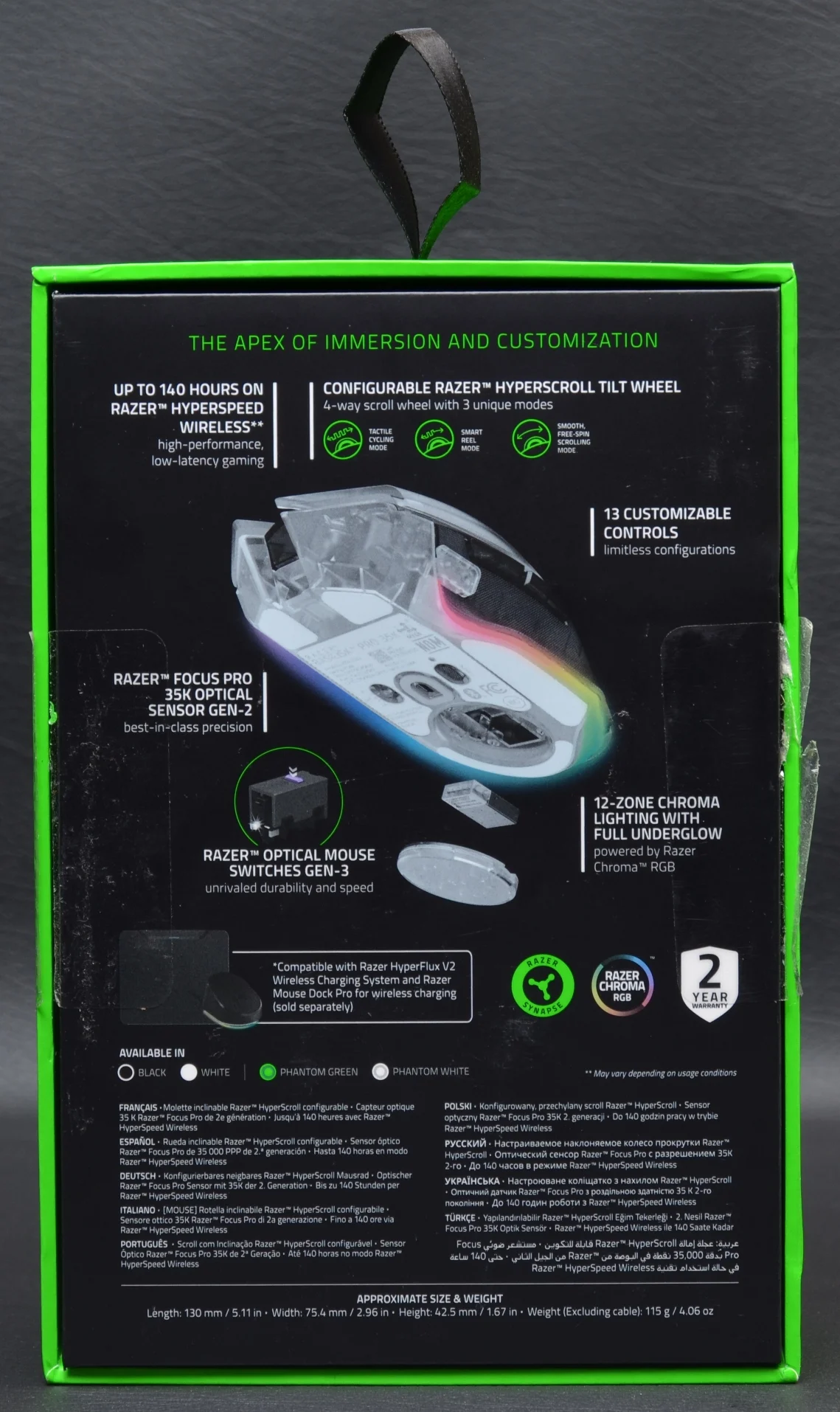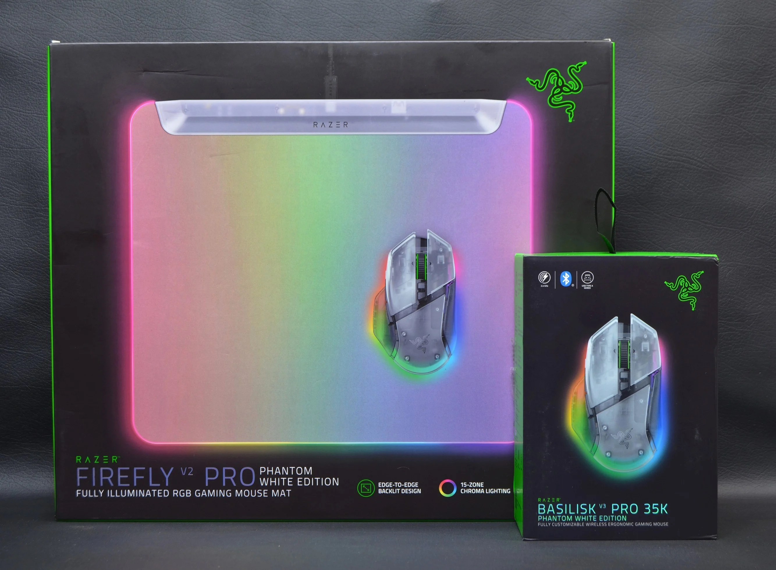 تبدع دائما Razer في تقديم ملحقات للمستخدمين بصورة أحترافية وهو ما سنراه اليوم مع مجموع مختلفة من طرفيات الحاسب الموجهة للاعبين من إصدار Phantom Edition  التي تتميز بهيكل خارجي شفاف وهو ما سيحبة الكثير من المستخدمين في هذا التصميم ، اليوم المراجعة ستكون للاعبين و الشغل الاحترافي حيث لدينا  فأرة (ماوس)  لاسلكية احترافية للألعاب و الأعمال مع أحدث مستشعر من الشركة RAZER FOCUS PRO 35K OPTICAL SENSOR GEN-2 تعمل من خلال تقنيات BT او Wifi 2.4GHz او يمكنك أستخدام السلك الملحق دون مشكلة ، اليوم لدينا ماوس BASILISK V3 Pro 35K  مع تدعيمه بمفاتيح من النوع الضوئي بعمر افتراضي 90 مليون ضغطة لا تتاثر بمشاكل تعدد النقرات مع الزمن و معدل استجابة 0.2s مما يعني استجابة ممتازة للاعبين كل هذا مدعم بمستشعر احترافى و وقوى من الشركة بسرعة 35K DPi مع سعر 170 دولار حاليا خاصة ان الماوس يتمتع بتقنيات HYPERSCROLL TILT WHEEL ، و نضيف لهذه المراجعة تجربة مع مسند الماوس الاحترافي FIREFLY V2 PRO Phantom Edition الموجه للاعبين مع إضاءة مبهرة و مريحة للعين .