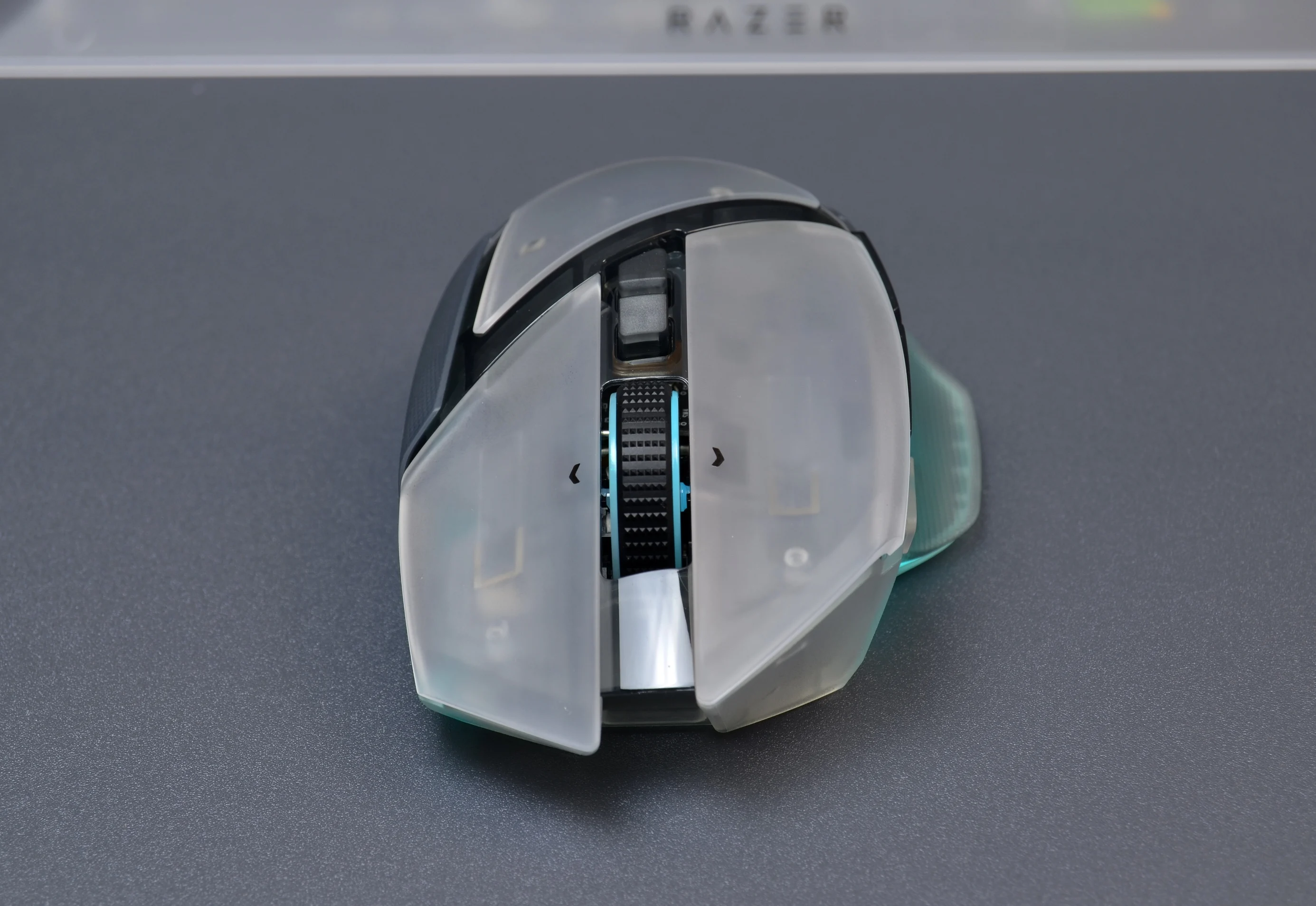 تصميم أزرار اليمين و اليسار من اعلى بشكل منفصل عن جسم الماوس و  بأنحناء بسيط في المنتصف يجعلها ممتازة للغاية اثناء الضغطات من يد المستخدم ، تتميز الأزرار الخاصة بهذا الجزء انها ازرار ضوئية بعمر افتراضي 90 مليون ضغطة و بمعدل استجابة هو 0.2 ملي ثانية وهي سريعة للغاية ولا يوجد مسافة للسفر لكافة المفاتيح مما يعطي سرعة استجابة افضل أيضاً المفاتيح الضوئية ستتجنب مشكلة الـ Double Click بنسبة كبيرة جدا .