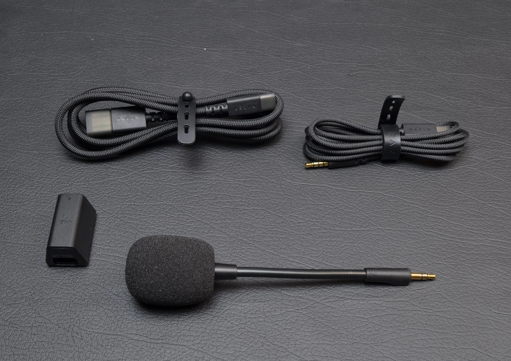 الملحقات الخاصة بالسماعة مميزة للغاية حيث تتضمن السماعة  كابل الشحن من نوع Type-C و كابل أخر للاستخدام مع منفذ 3.5مم لمنصات الترفية المنزلي و الجزء الخاص بالأستخدام اللاسلكى وهو دونجل من نوع Type-C للتوصيل بأستخدام تقنيات Wifi فهى أفضل من تقنيات BT و تعطى زمن استجابة أفضل بكثير للاعبين ، أيضاً كافة الكابلات تملك تغليف احترافى لها مع حقيبة للتنقل بالسماعة و ستلاحظ ان الجزء الخاص بتشغيل تقنيات Wifi 2.4GHz تم تصغيرة بصورة ممتازة ليناسب التنقل والتوصيل بصورة ممتازة