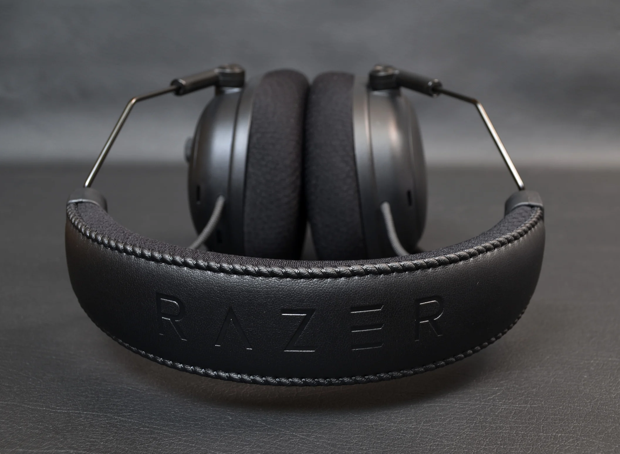 شعار Razer أعلي السماعة و تطريز مع الجلد بشكل فخم للمستخدم و بالطبع الجزء المبطن في أعلي السماعة ممتاز لراحة الرأس للمستخدمين