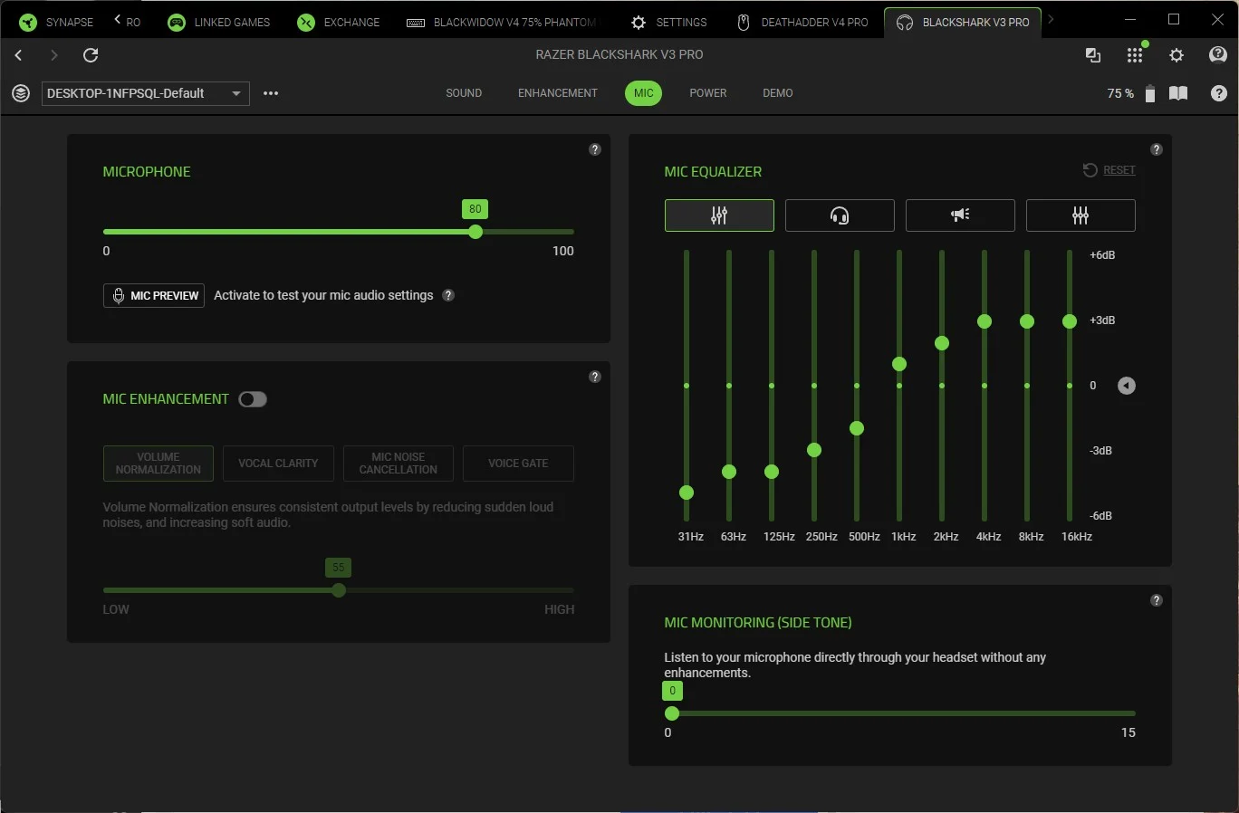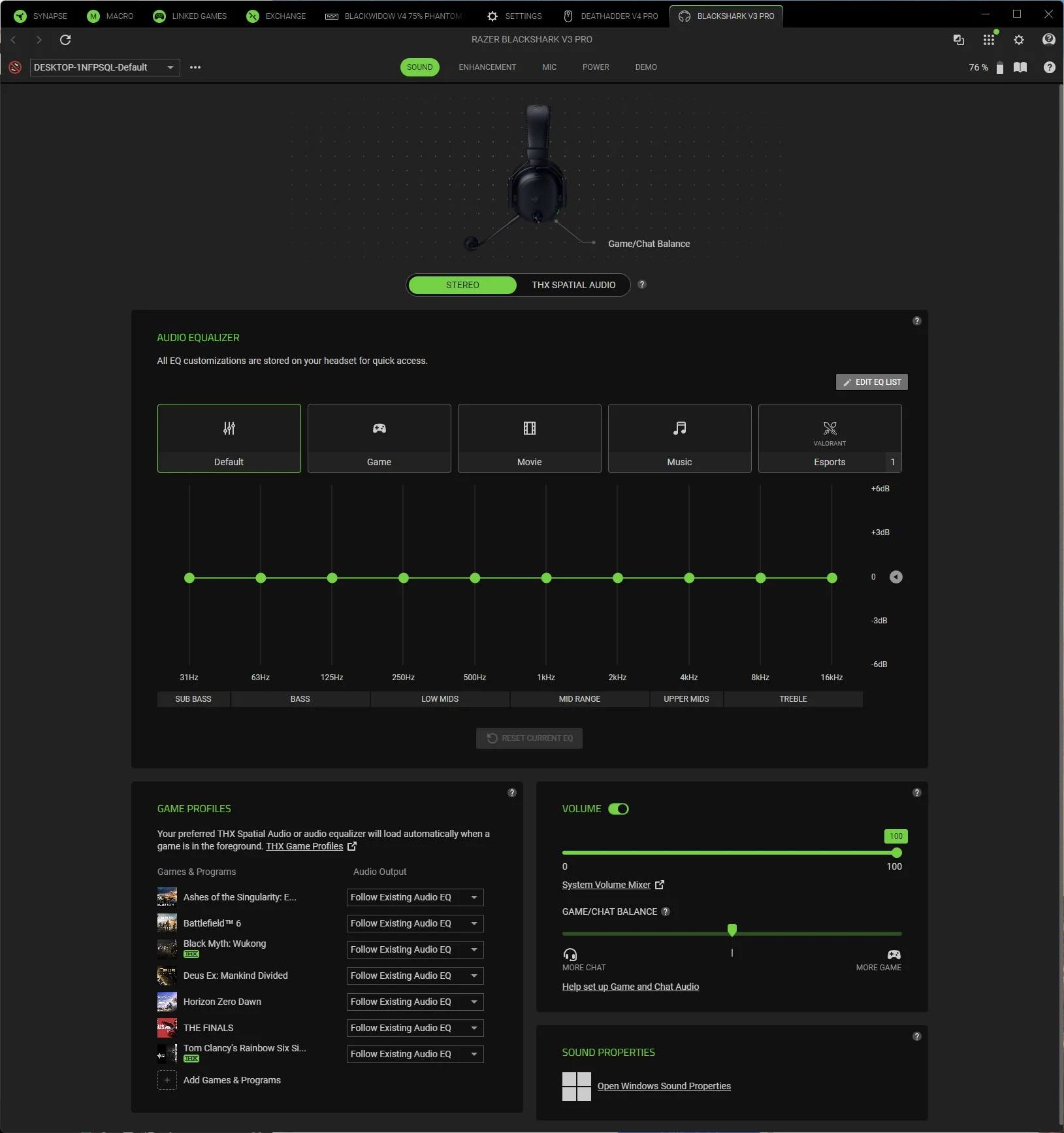 14- البرنامج الملحق يقدم تخصيصات ممتازة للسماعة لا يمكن إنكارها من المستخدم ووضع Razer كل ما تملك من تخصيصات هنا لذلك هو جزء هام ومفيد للمستخدم