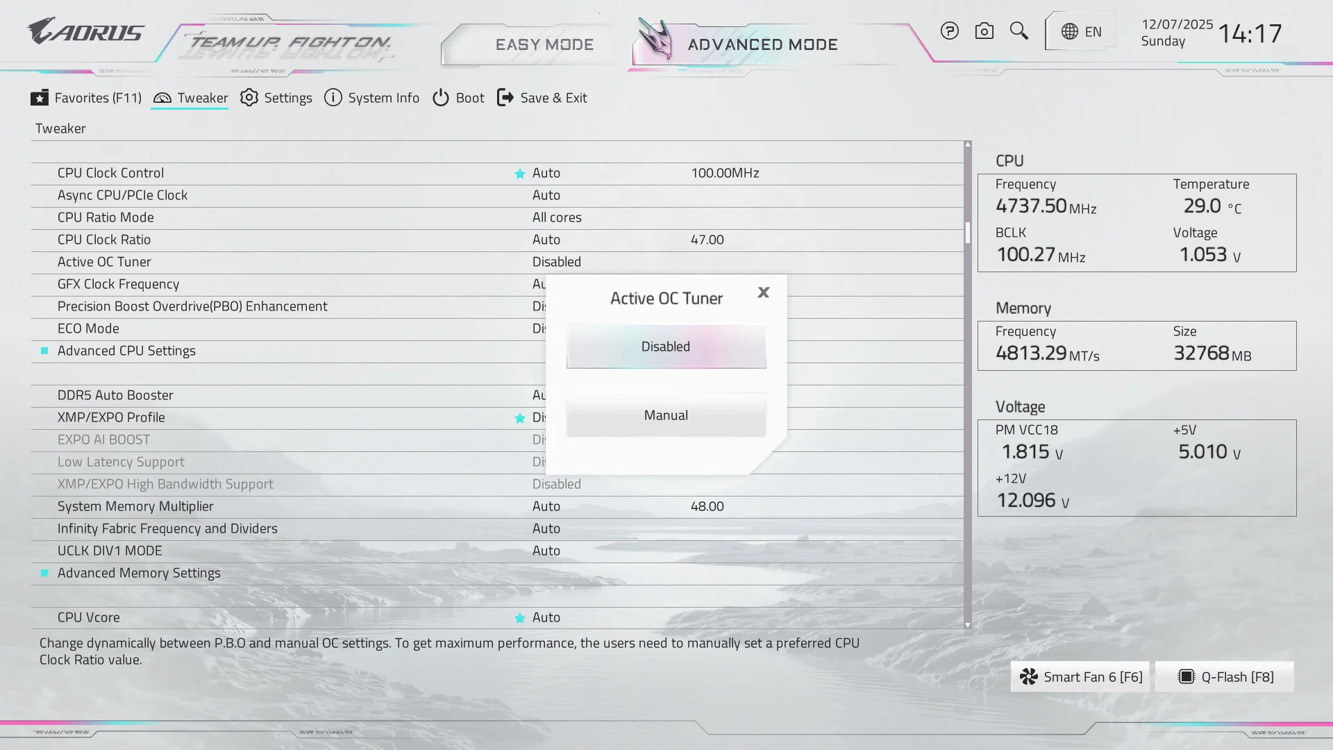 توفر شركة Aorus نمط OC Tuner لتقدم للمستخدم حل سحري لكسر السرعة حيث يمكن للمستخدم ضبط الكسر المراد تطبيقة في الألعاب و الكسر السرعة المراد تفعيلة في عمليات الرندر او المهام الثقيلة للمحافظة علي الحرارة و استهلاك المعالج للتطبيقات مما يوفر راحة أكبر للمستخدم بكل تأكيد .