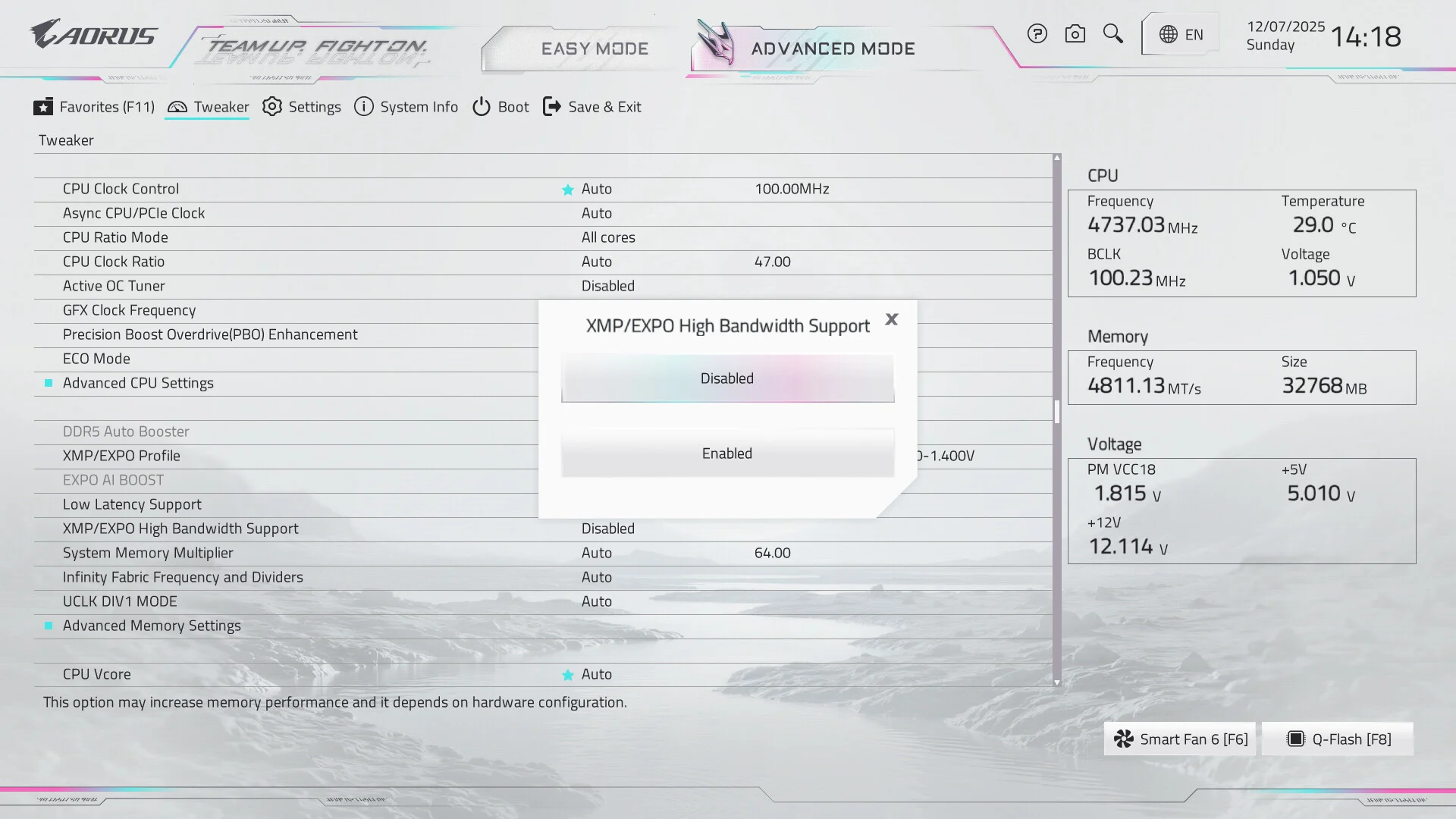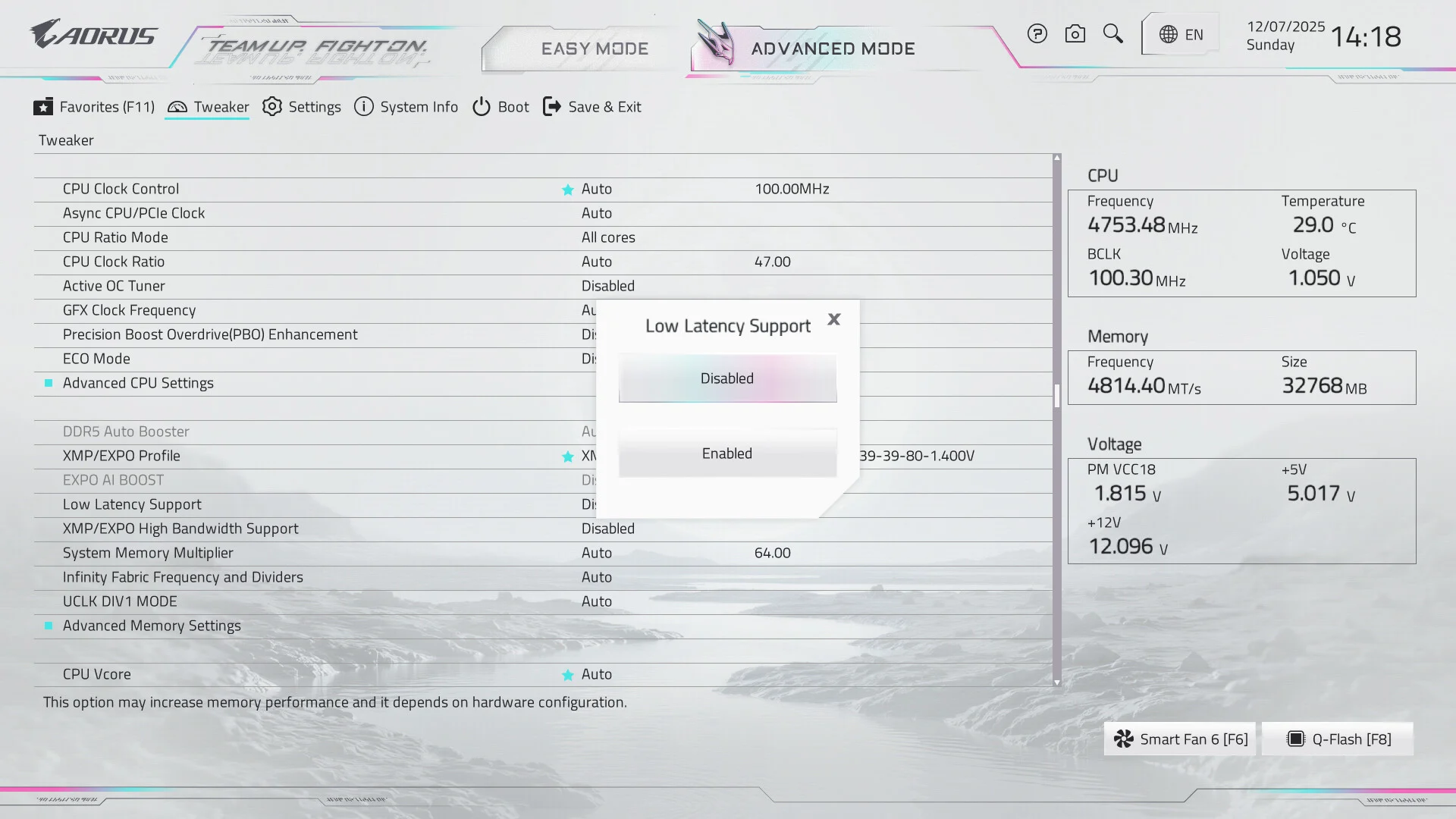 وضع High Bandwidth لزيادة الأداء الخاص بالذواكر دون الحاجة للدخول إلى شاشة التوقيتات و كذلك وضع Low Latency لتقليل أزمنة الاستجابة والحصول علي أداء مجاني بشكل أفضل و فعال