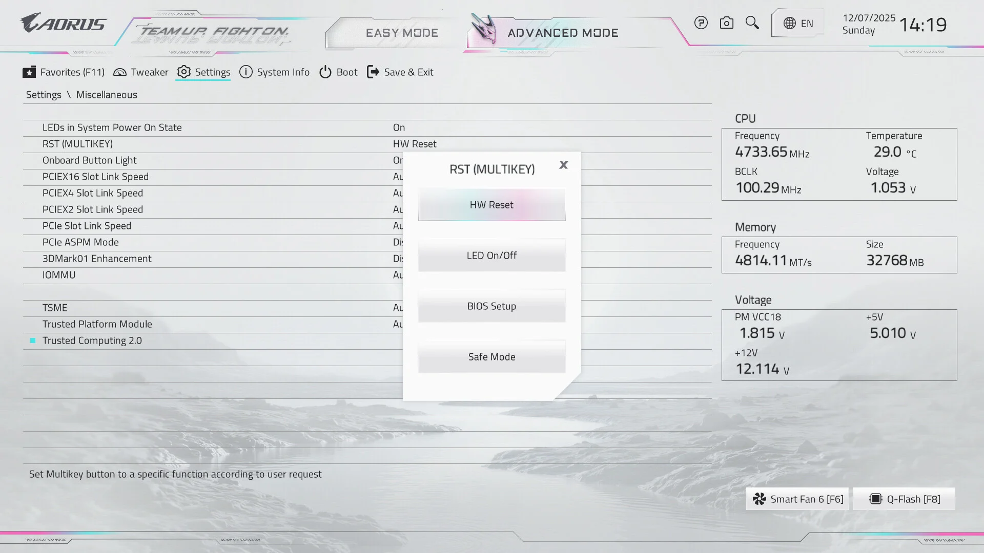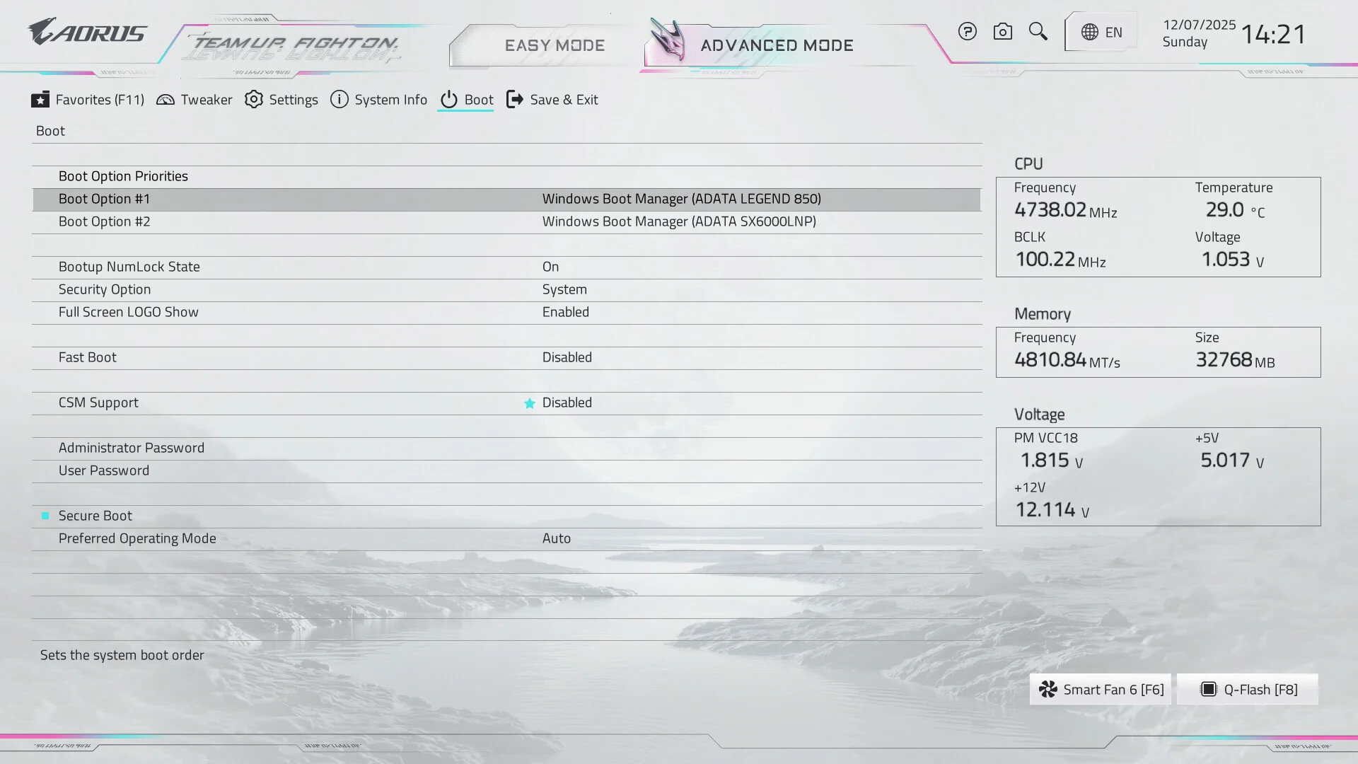 البايوس الجديد من Aorus يحتاج إلى بعض الإضافات مثل Secure Erase ، جعل شاشة الأخطاء تظهر الحرارة
