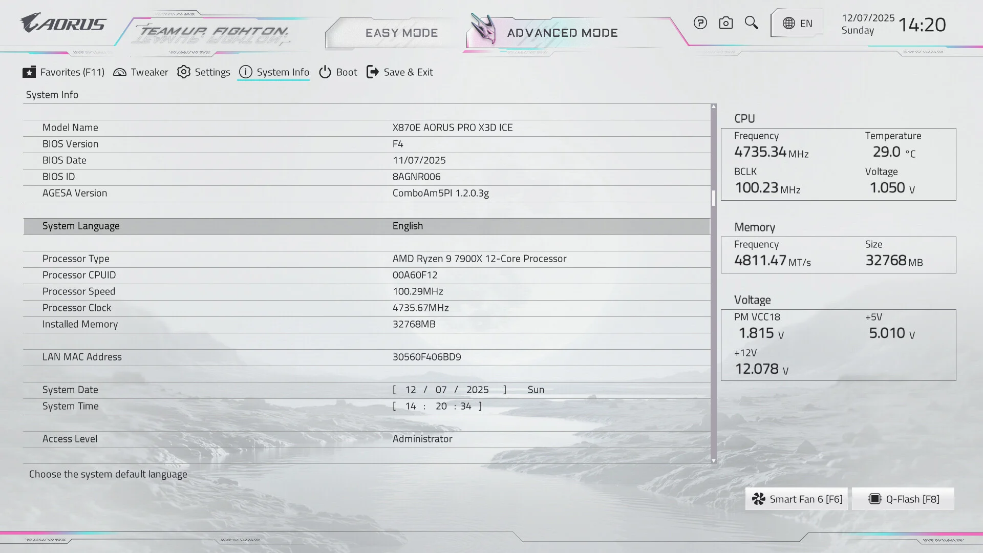 -شاشة الدخول الرئيسية الجديده (مثال عام لكافة لوحاتX870 /B850 من Aorus)