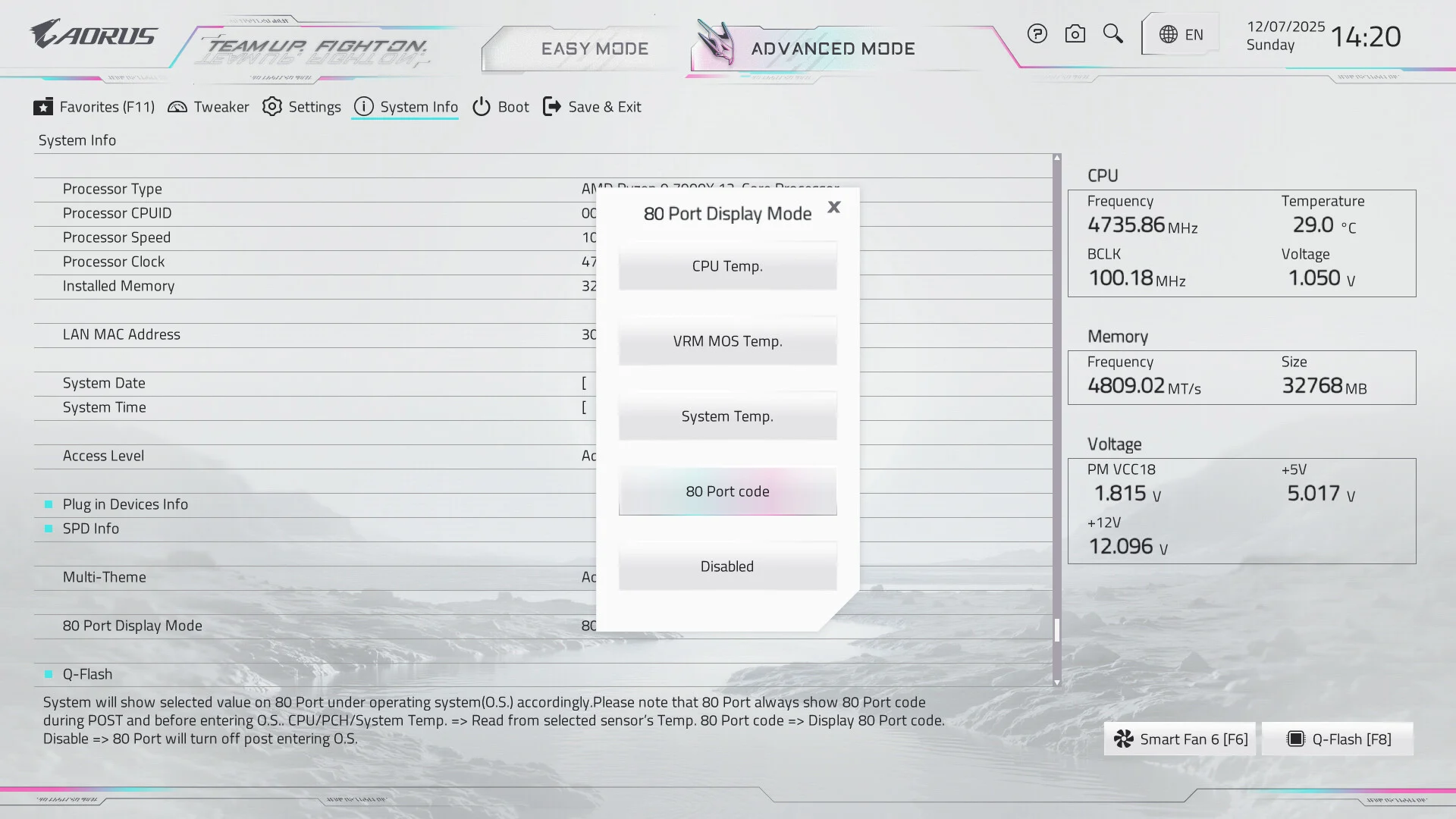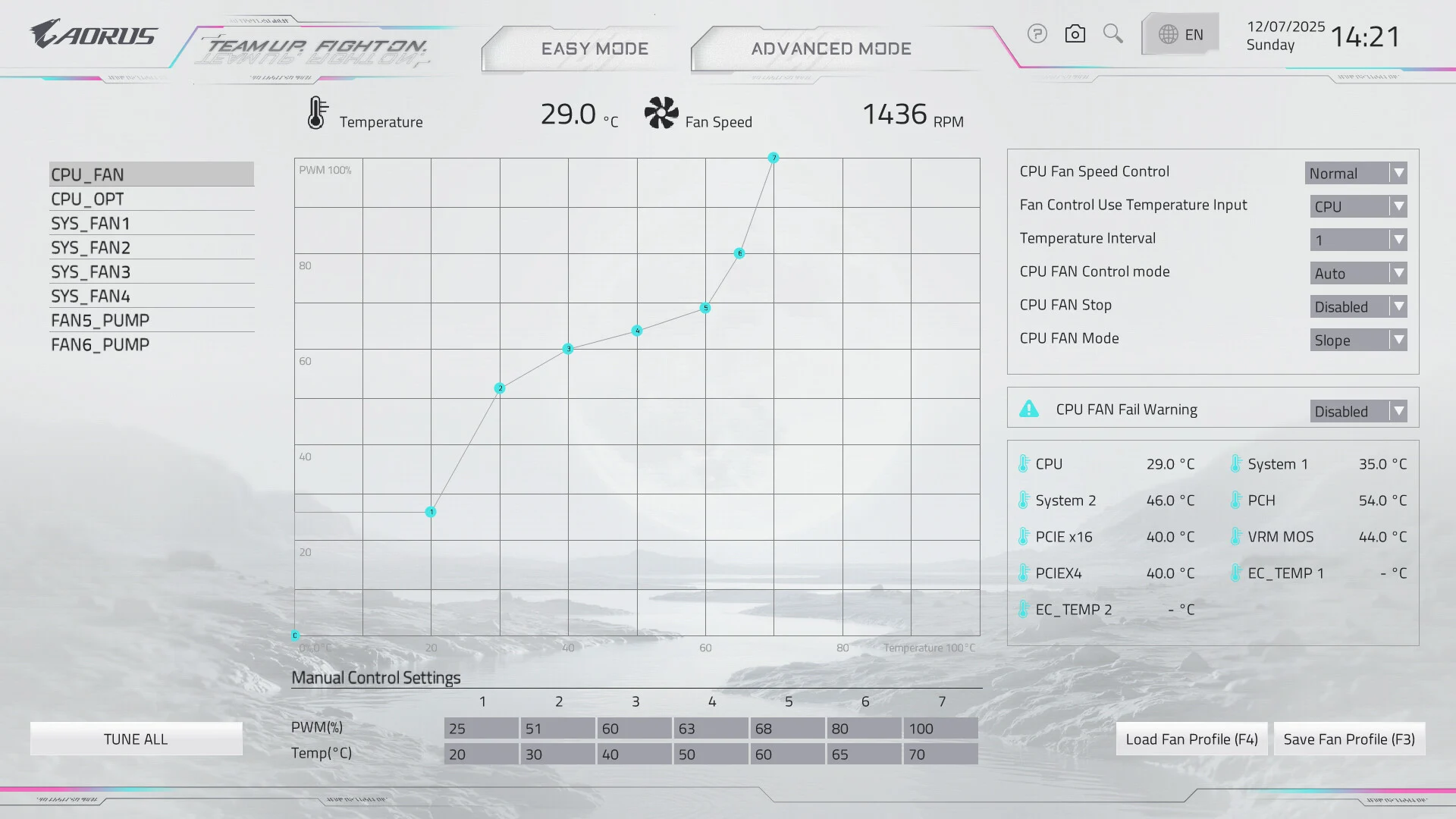 وضع أحترافى للمراوح داخل البايوس وهو الأمر الذي يريدة المستخدمين ، ستجد حرارة ال5 مستشعرات الحرارية علي اللوحة