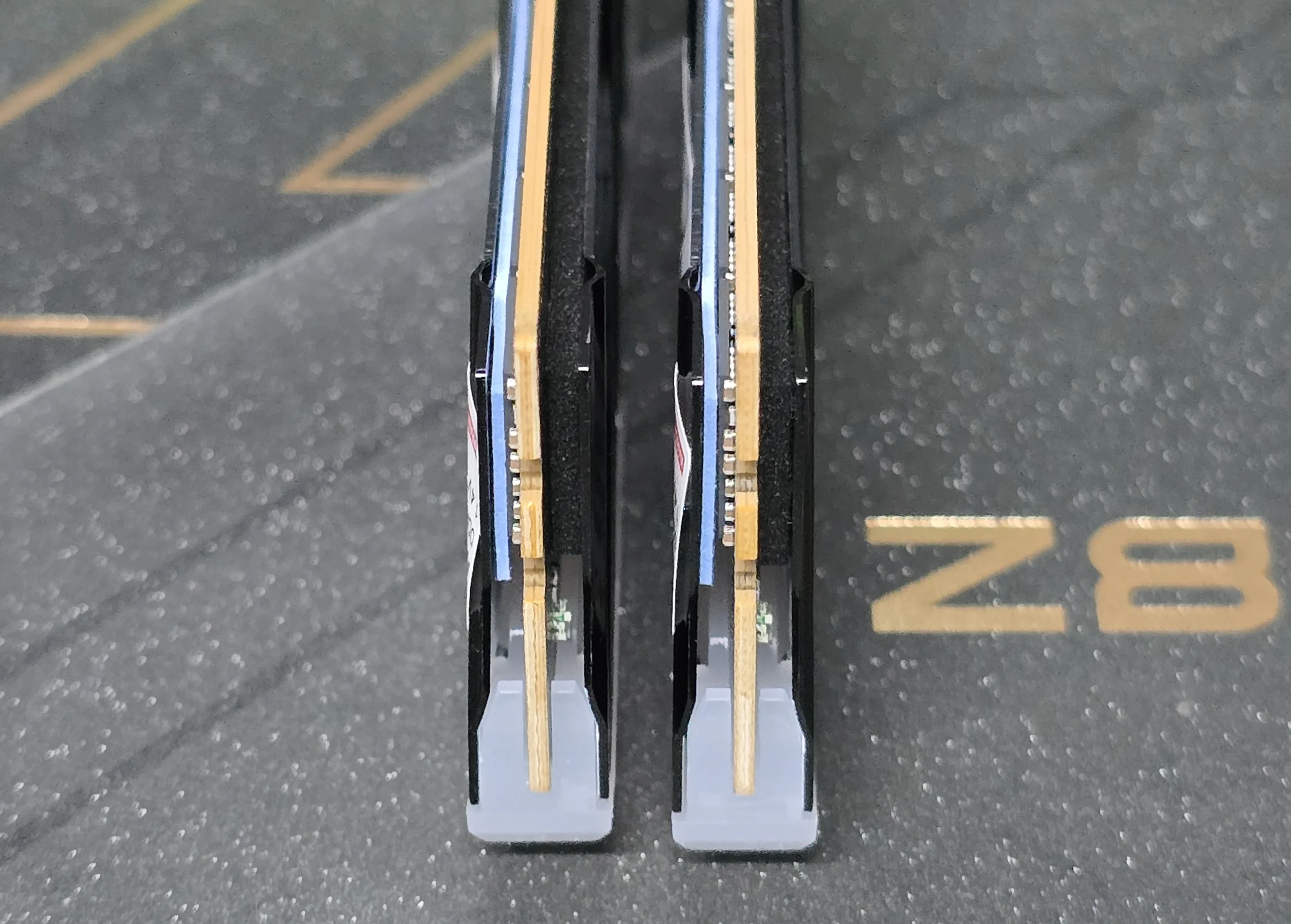 سمك الذواكر يصل إلى 0.85 سم تقريبا مع ارتفاع يصل إلى 3.9 سم وهو ارتفاع متوسط مقارنة ببعض الذواكر الأخرى ، ستجد ان القطع الماصة للحرارة تتصل بالرقاقات بشكل جيد جدا وحتي متحكم الفولتية يتم تبريدة من خلال ماصات الحرارة مثل رقاقات الذاكرة ، الذواكر تستخدم جانب واحد Single Rank ، اما عن الحرارة فسنتكلم عنها في نهاية المراجعه .