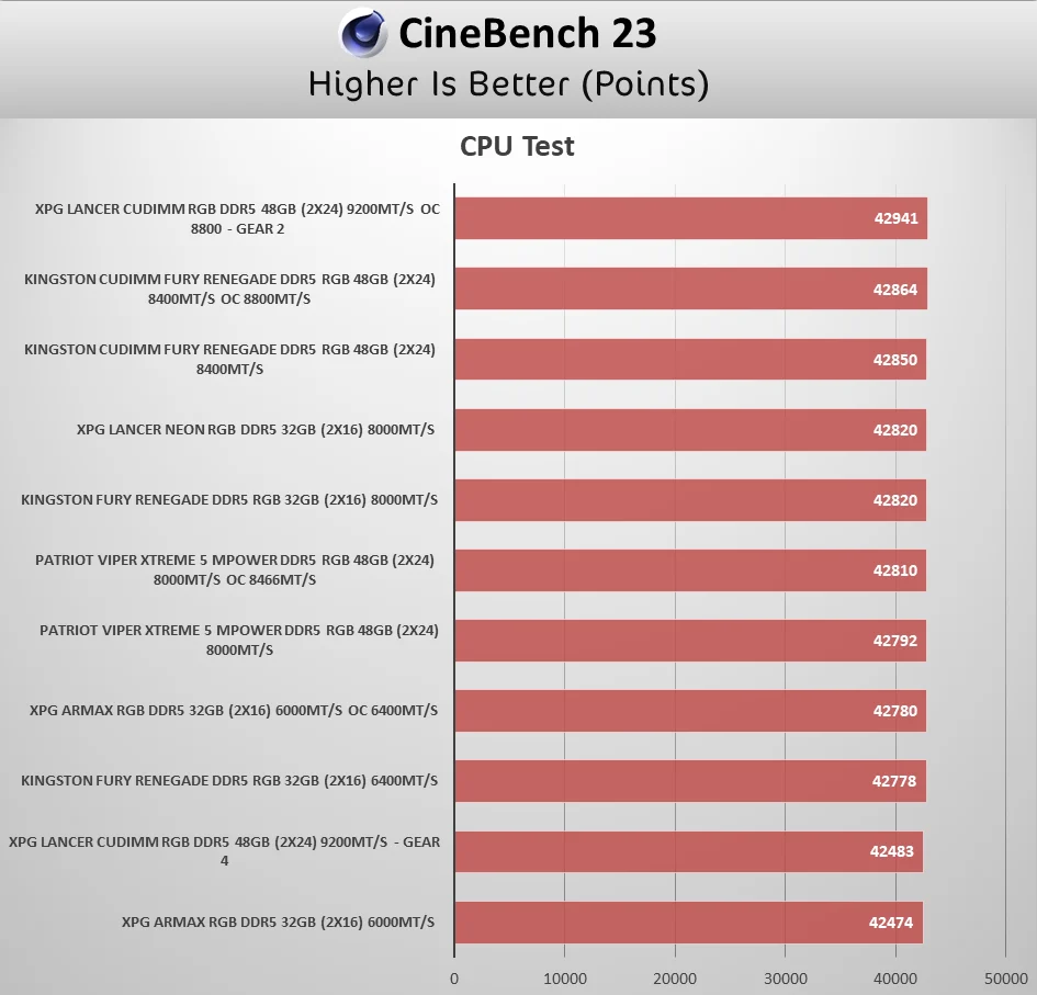 فرق الأداء مع المعالجات الجديدة Ultra 9 285K لا يستهان به خاصة عندما تملك ذواكر بسرعات أعلي من 6400 ، و بالطبع يجب عليك ان تقوم بالتركيز هنا علي التوقيتات الخاصة بالذواكر محل المراجعة فستجد انه السرعات مع التوقيتات متناسقة لتعطي زيادة الأداء في التطبيقات التى لديها حساسية تجاه الذواكر مثل برامج الضغط كمثال بسيط فستجد الذواكر الأسرع هي الأفضل ، أيضا في الألعاب ستجد ان متوسط الإطارات يزيد بصورة ملحوظة في بعض الألعاب أما معدل الإطارات الأدنى قد ارتفع بنسبة جيدة جدا