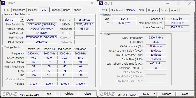 | XPG AX5U6000C3016G-DTAMRBK DDR5 RGB 32GB (2 x 16GB) 9200MHz CL42 | 6000MT/s (30-40-40-76 V1.40) | 6400MT/s (32-39-39-80 V1.40) |