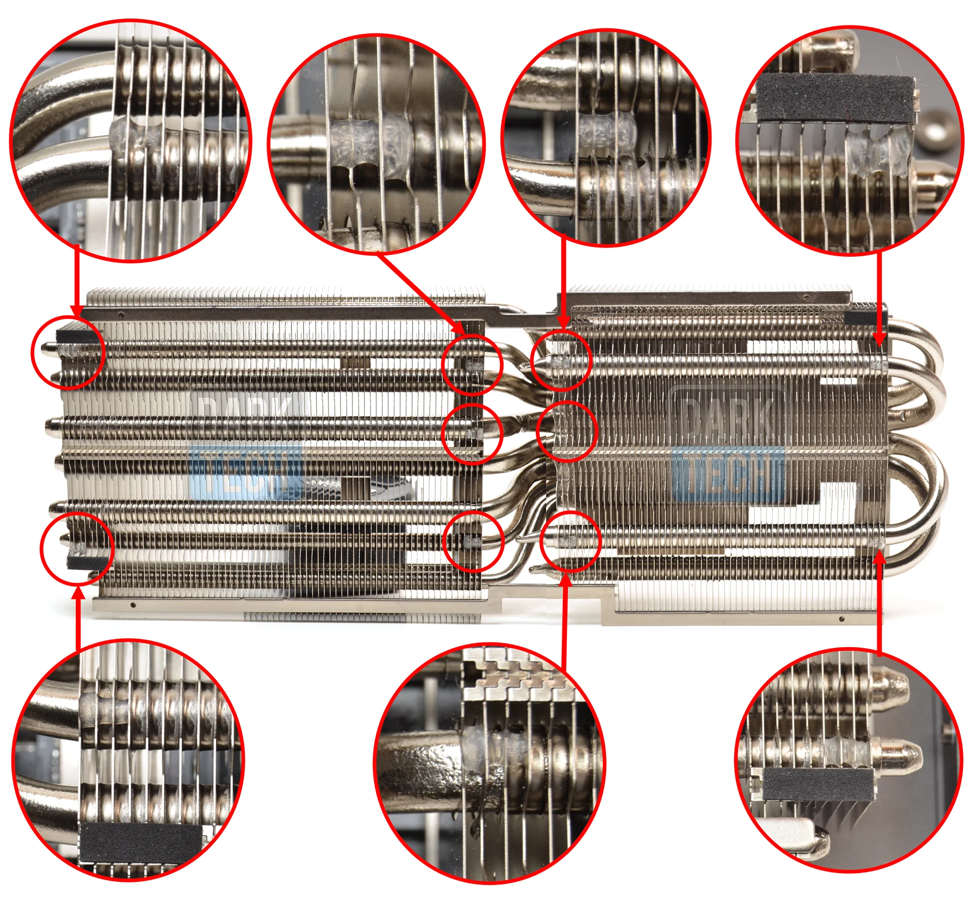 النفاصيل هي أحد هم النقاط التي أحب ان اراها في المنتجات و اليوم عندما قمت بفك التبريد وجدت مادة صلبة توجد علي جسم المشتت من أعلي و نادر ما اراها ولكنها موضوعة هنا لتثبيت الزعانف المعدنية لتقليل اي اهتزاز معدني من تبريد البطاقة وهو ما يعني اهتمام الشركة بأدق التفاصيل