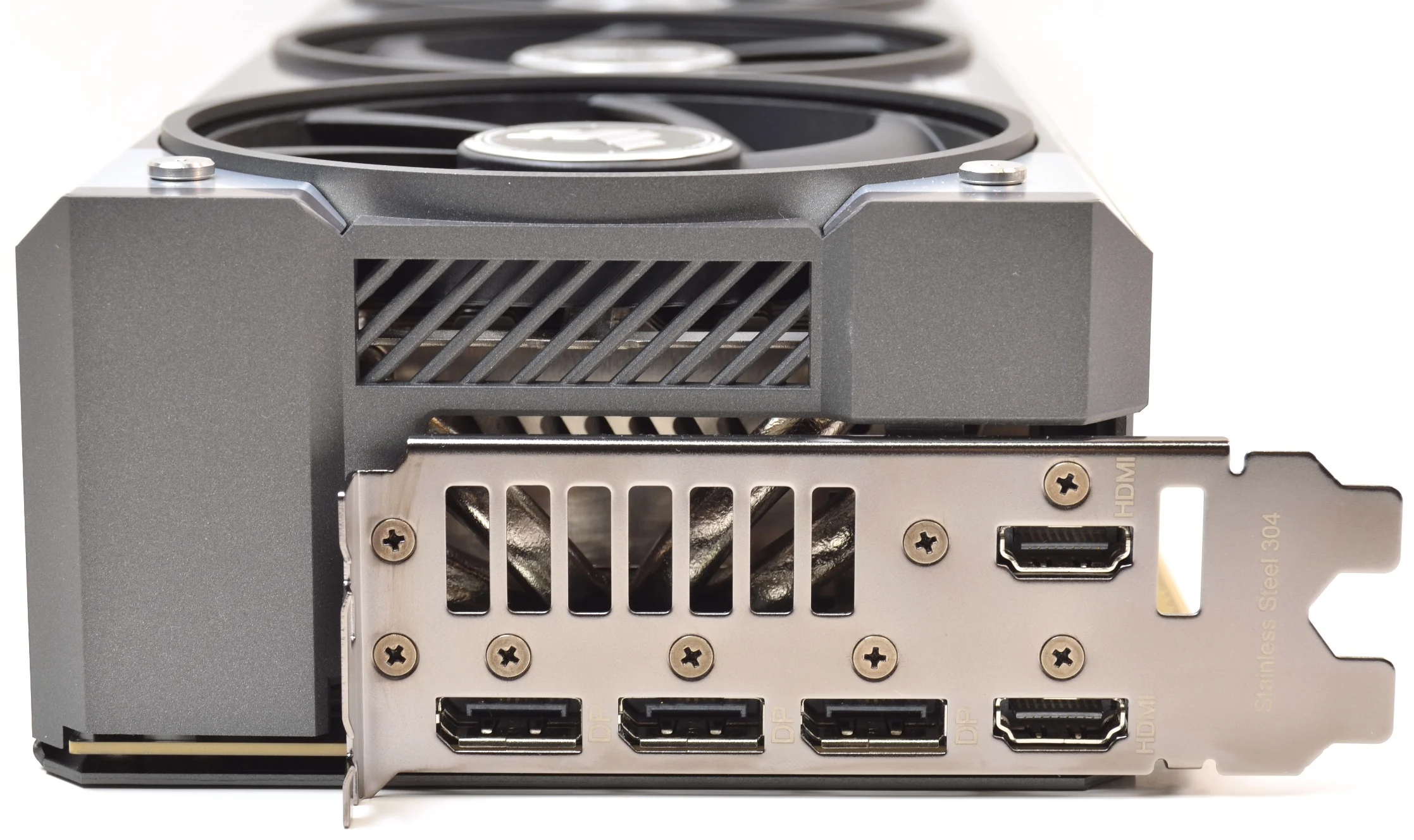 منافذ الطاقة : البطاقة تستخدم منفذ 12Vhpwr وهو أكثر من كافى لهذه البطاقة تحديداً لان الشركة لا تسمح بزيادة الطاقة أكثر من المتاح لها من البايوس عن 450 وات مثل البطاقات الأحترافية الأخري