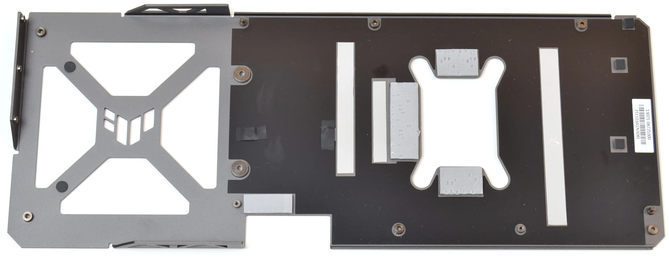 الغطاء المعدني الخلفي و يتصل مع البطاقة من خلال نقاط التوصيل المختلفة والمسامير كما نري في الصورة و وجود وسادات حرارية لنقل الحرارة أمر مميز لتبريد أفضل للمكونات مع تدعيم البطاقة بكل تأكيد