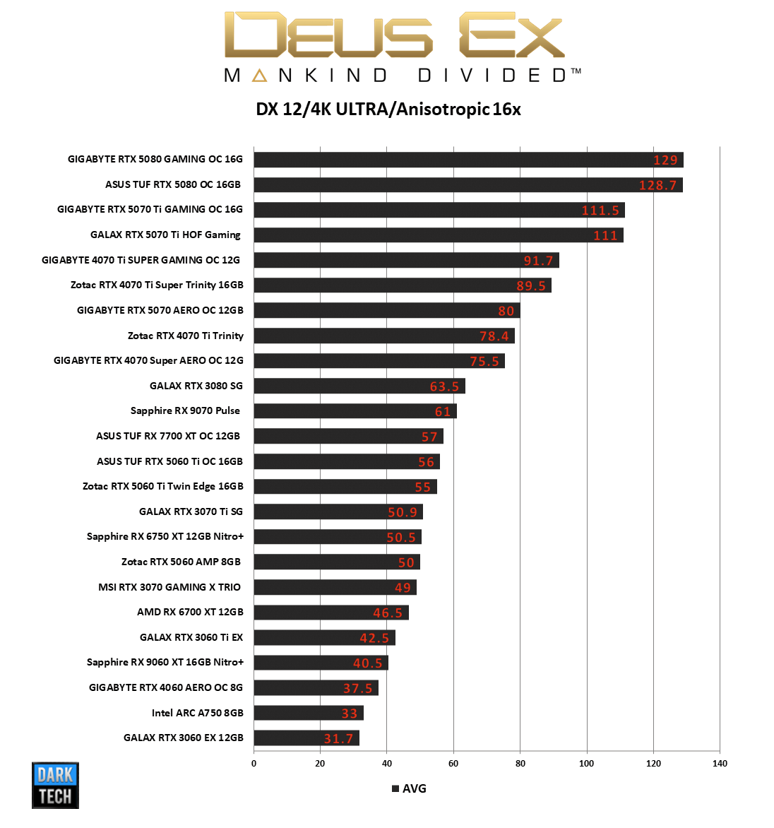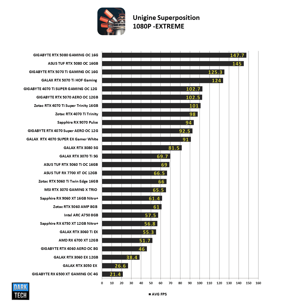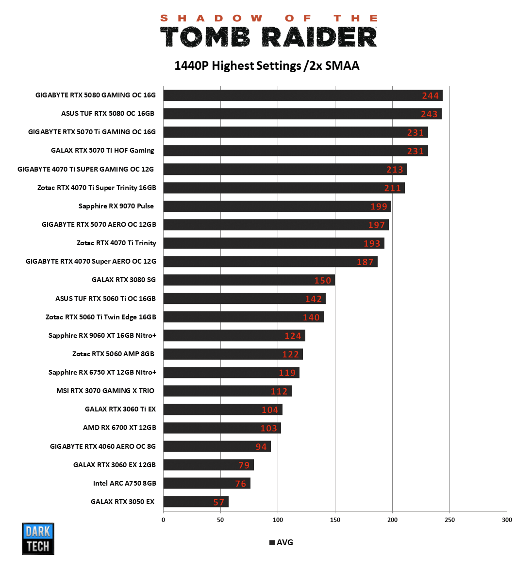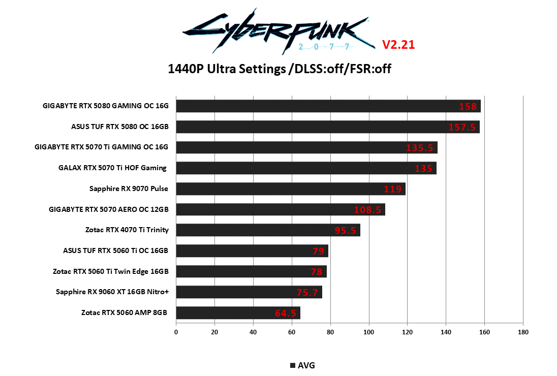 البطاقة موجهة لدقة 2160P بكل سهولة حيث تجد ان بطاقة RTX 5080 TUF تتفوق في المتوسط بين 13% إلى 17% حسب اللعابة بكل تأكيد فهذه البطاقات تحتاج إلى معالج مركزي قوي ولذلك ستجد ان حتي دقة 1440P تملك نسبة من عنق الزجاجة واضحة مع بعض الألعاب و تختفي هذه النسبة مع دقة 2160P أو 4K وهو ما يظهر في الأختبارات الخاصة بنا اليوم ، لندخل إلى دقة 1080P التي ليس لها قدر كبير في مراجعتنا اليوم ولكنها ستظهر لك كيف يمكن ان يكون عنق الزجاجة مع بطاقات مثل RTX 5080 !