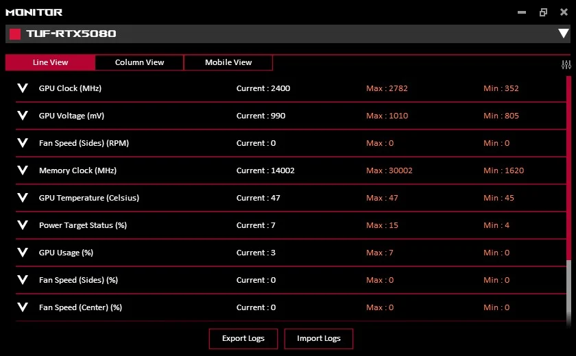 حقيقة برنامج GPU TWEAK III يقدم للمستخدم كل شيء بداية من التحكم في البطاقة مرورا بإظهار بيانات البطاقة فهو ضمنيا يملك برنامج GPU-Z و برنامج لعرض عد الإطارات علي الشاشة وغيرها من معلومات أخري للمستخدم بكل سهولة ولكن الشيء الوحيد الذي لا يملكة هو انه يجب عليك تنصيب برنامج أخر للتحكم في إضاءة البطاقة وهو برنامج Armory Crate وهو برنامج كبير و كامل لكل منتجات الشركة لذلك يفضل انت تقتني هذه البطاقة إذا كانت لوحتك الأم من ASUS لتتلاشي وجود برمجيات كثيرة علي جهازك إذا كانت التحكم في الإضاءة امر حيوي وبالطبع لا يوجد مشكلة في تنصيب اكتر من برنامج ولكن هو مجرد رأي شخصي .