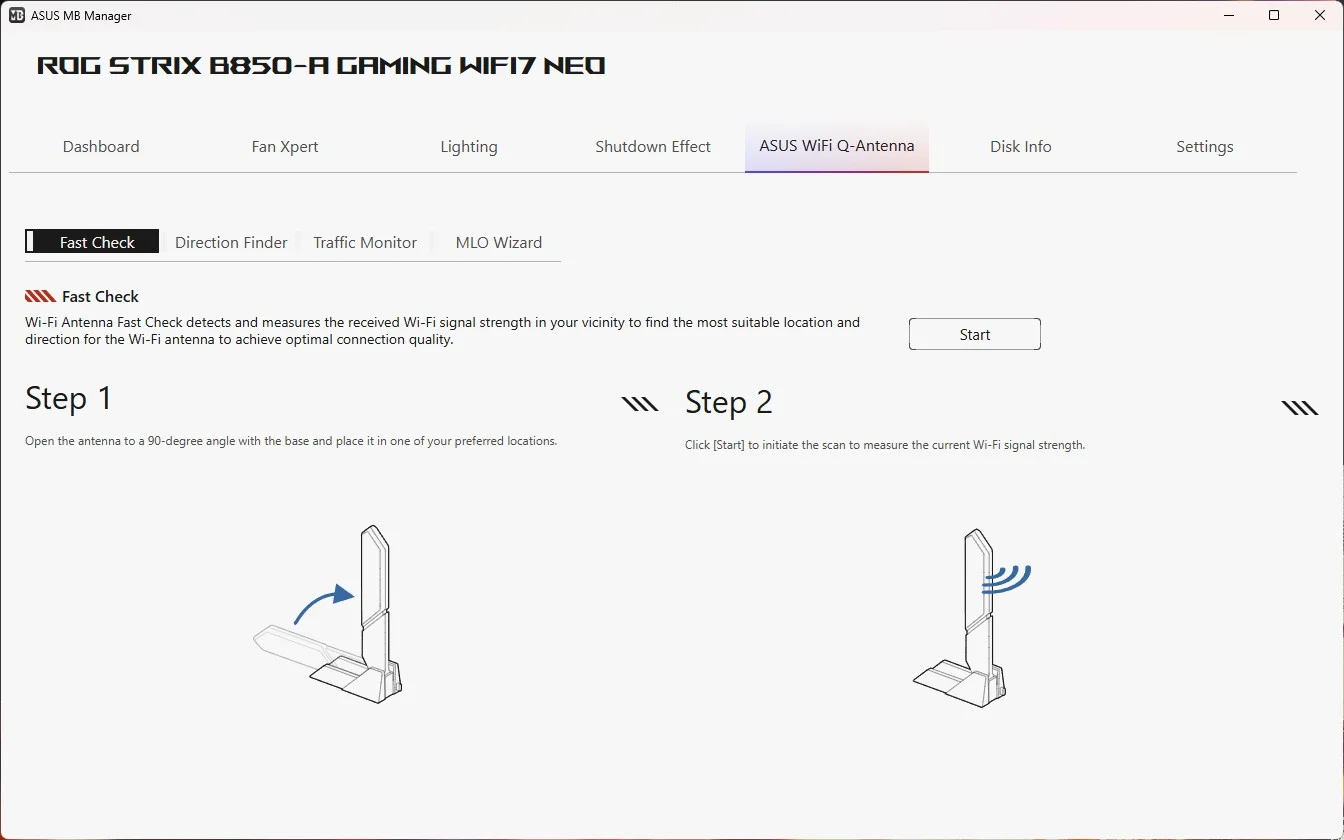 جزء أخر يتيح للمستخدم تحديد الأتجاه الأفضل لمقوي الإشارة الخاص بالواي فاي خاصة في اللوحات الداعمة لWifi 7 مع بعض المميزات الأخرى الظاهرة في الصورة