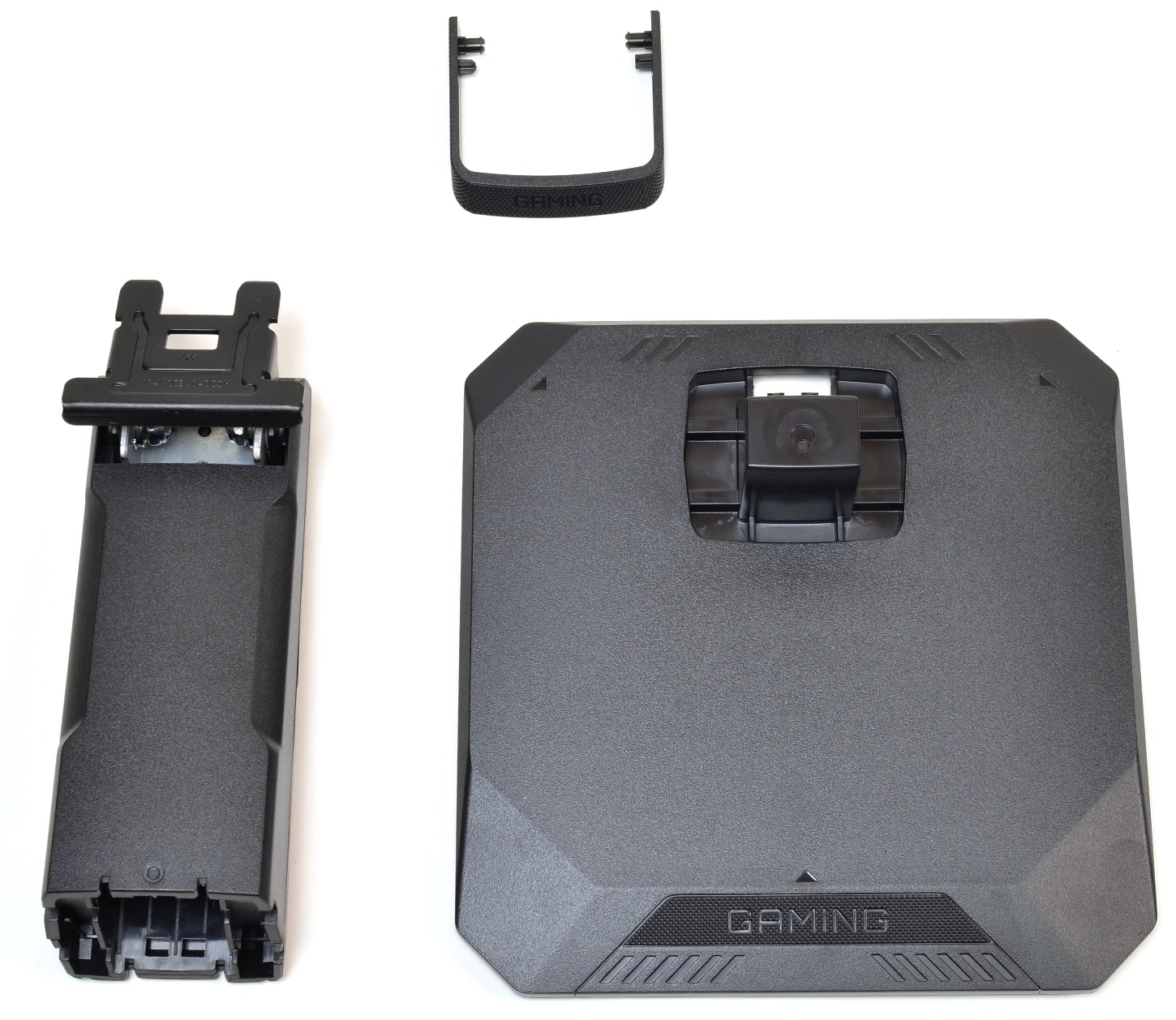 عند فتح الصندوق ستجد ملحقات الشاشة ثم تجد قاعدة الارتكاز و زراع الحركة الخاصة بالشاشة ، الأطراف الخاصة بقاعدة التثبيت بها قطع من المطاط لتثبيت الشاشة قدر المستطاع وهو جزء مميز لان حجمة صغير وسيناسب كافة المكاتب دون مشكلة وهو من البلاستيك بالكامل، اما عن زراع الحركة فهو بسيط ومن البلاستيك أيضا و يوجد به جزء لتنظيم الأسلاك يتم فكة و تركيبة سنتعرف عليه في الجزء القادم من الملحقات الخاصة بالشاشة