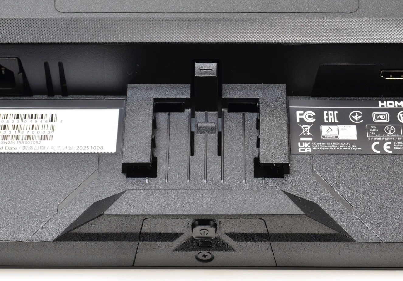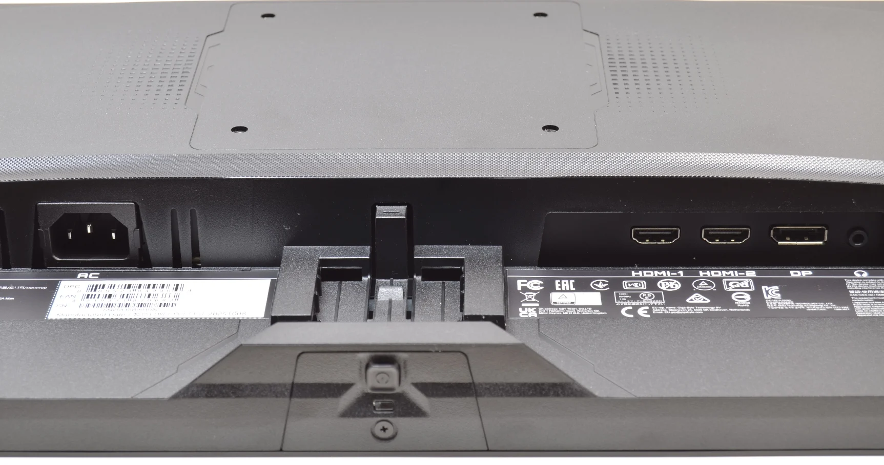 الشاشة عند إخراجها من الصندوق و الفتحات في الأعلى و الأسفل مخصصة للتبريد أيضاً يمكن تعليق الشاشة على الحائط والشاشة تدعم ذلك عبر معيار VESA بحجم 100 100xمم، كل ما عليك الأن هو تركيب قاعدة الارتكاز مع زراع الشاشة و من ثم تشغيل الشاشة .