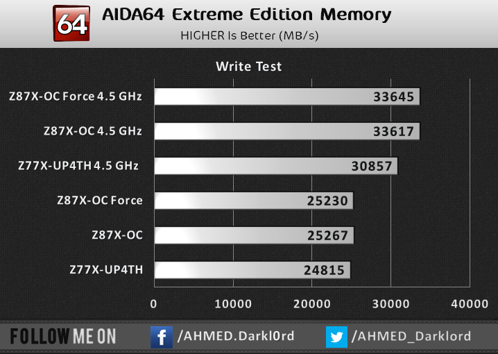 ملحوظه أقصي كسر سرعه تمكنت من الوصول إلية كان تردد 5.2 GHz زلطن بدون ثبات أقصي تردد من حيث الثبات هو 5.1 GHz وهذا بسب التبريد الهوائي الخاص بى وأيضاً أقصي كسر للذواكر كان بتردد 2000 ميجا وهذا بسبب المُعالج وليس اللوحة لذلك يجب عليك مُراعاة انه يوجد فرق في كسر الذواكر ولكنه بسيط جداً 2133 لصالح مُعالج 4670k وتوقيتات 10-12-10-28 لذلك قمت بتقليل التوقيتات بصورة بسيطه علي معالج I5-3570k ليكون الفرق بسيط المُتحكم الرئيسي هنا في كسر الذواكر هو جودة المُعالج المركزي (مُتحكم الذواكر داخل المُعالج) وسيتم الأختبار علي تردد 4.5 Ghz لنتمكن من مقارنة المُعالجين بصورة أكثر وضوحاً