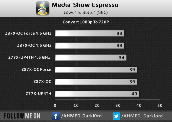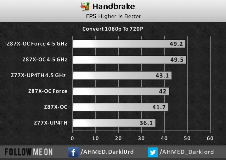 في أقل كلمات لم أواجه أي مشاكل من أي نوع مع تلك اللوحة وتجربة كسر السرعه كانت بسيطه وسهله وتمكنت من الوصول لتردد 5.2 GHz ولكن أخترت تردد 4.5 جيجا هرتز حتي تتمكن من المُقارنه بين المُعالجات واللوحات ويبدو ان تصميم اللوحة راعي كلاً من كسر السرعة وأحدث تقنيات أنتل للنقل وهو THUNDERBOLT وفى النهاية أثبتت اللوحة قوتها وقدرتها علي منافسة لوحات z87