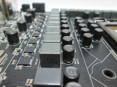 مُكثفات صُنعت خصيصاً لشركة جيجابايت تم أختبارها علي درجة حرارة 105 سيليزيه لنجد أن العُمر الأفتراضي لها هو 10000 ساعه من العمل المُتواصل وتأتي باللون الأسود هذه المُكثفات من أنتاج شركة Nippon Chemi-Con اليابانية .