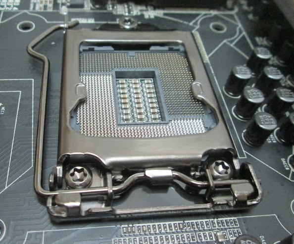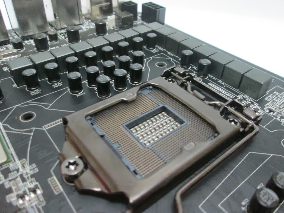 نرى هنا مقبس المُعالج وهو بالطبع مقبس 1150 الداعم لمُعالجات Intel Core I7/5/3 من الجيل الرابع