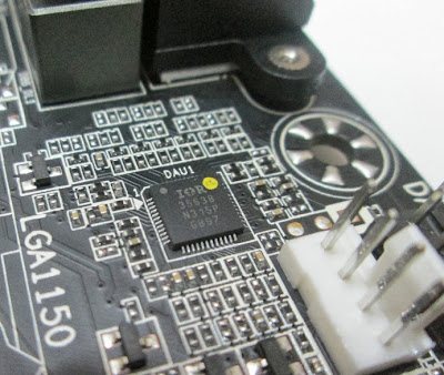 الشريحة في الأعلى iTE8728F هى المسئولة عن قراءة درجات الحرارة والفولتية الخاصة باللوحة وسرعة المراوح وتوفير منافذ الـPS/2 للـوحة المفاتيح والفأرة